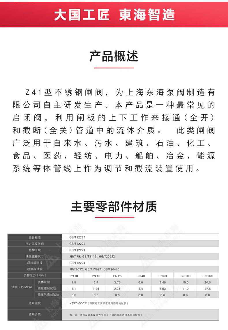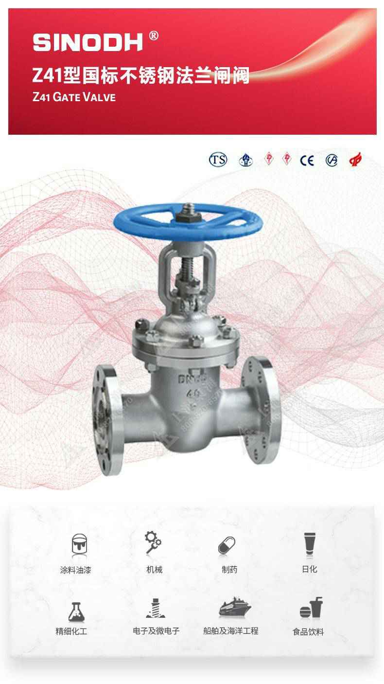 Z41型不锈钢闸阀,为开云官方站线网站登录入口-开云online(中国)自主研发生产。本产品是一种最常见的启闭阀,利用闸板的上下工作来接通(全开)和截断(全关)管道中的流体介质。此类闸阀广泛用于自来水、污水、建筑、石油、化工、食品、医药、轻纺、电力、船舶、冶金、能源系统等体管线上作为调节和截流装置使用。